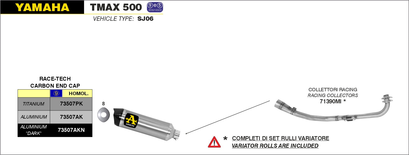 SCARICO OMOLOGATO RACE-TECH TITANIO-CARBONIO ARROW YAMAHA T-MAX 500 08-11