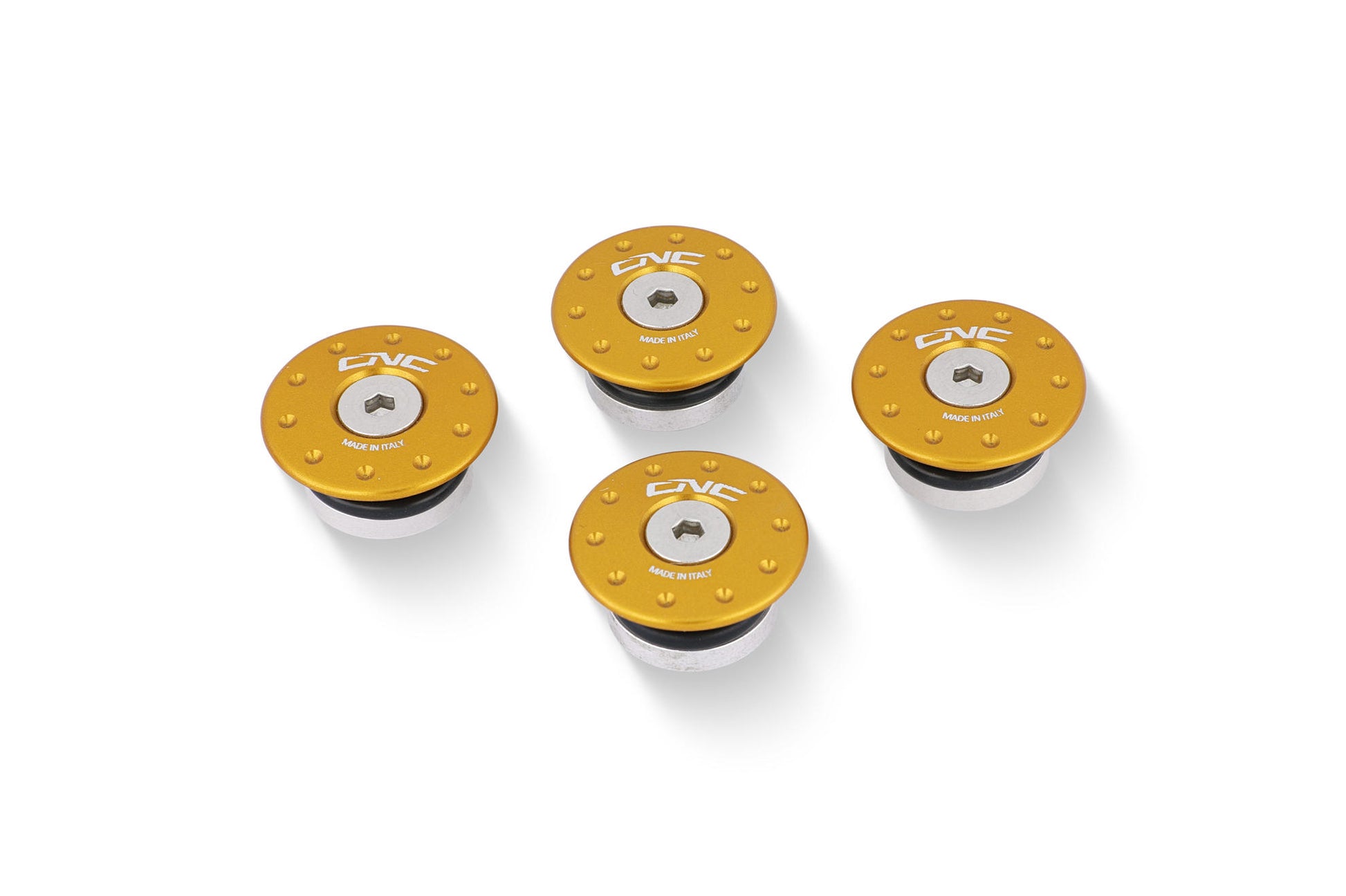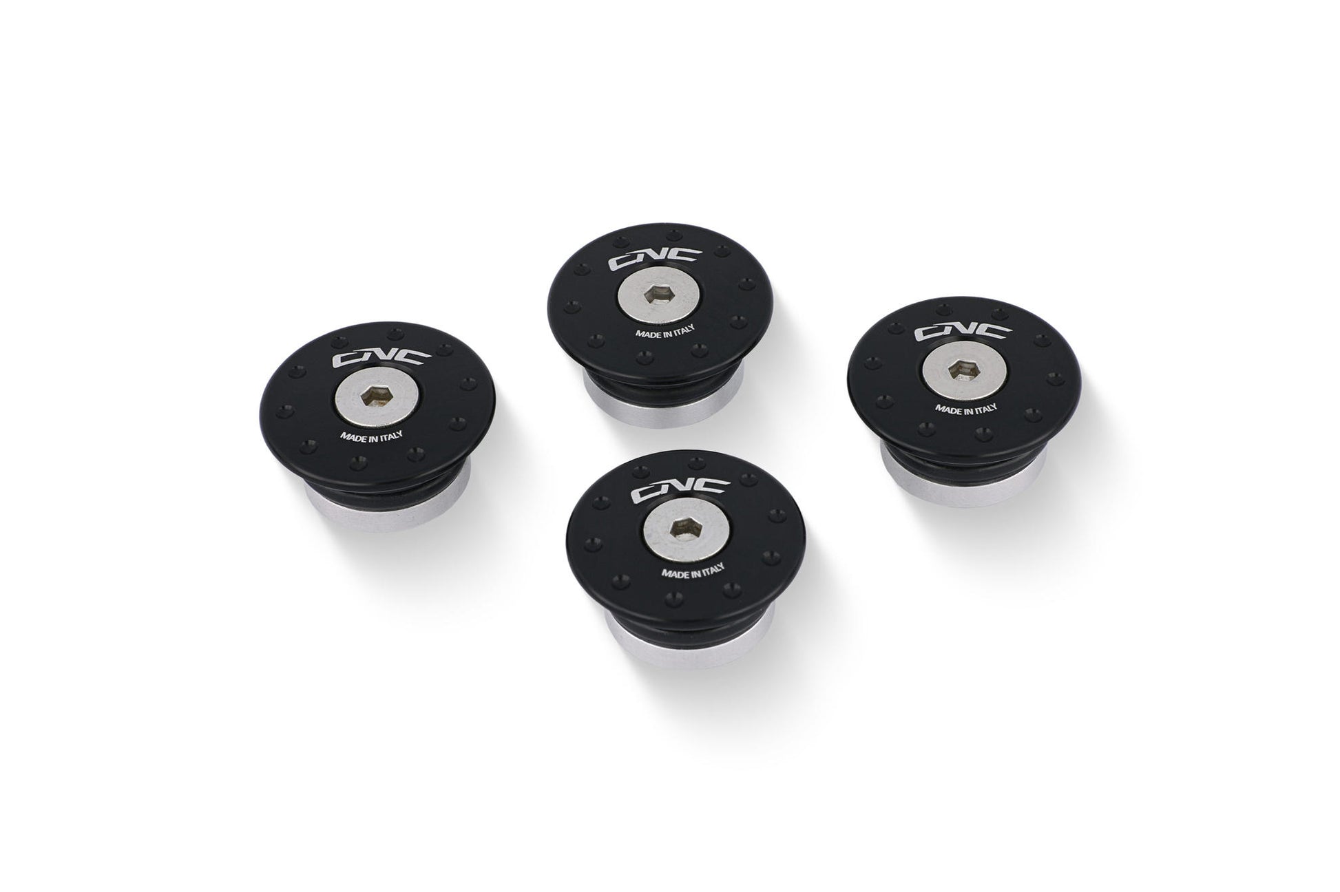 Tappi telaio realizzati dal pieno in lega leggera con successiva anodizzazione superficiale. Il kit è composto da 4 tappi ognuno nelle misure precise per adattarsi ai vari fori del telaio.