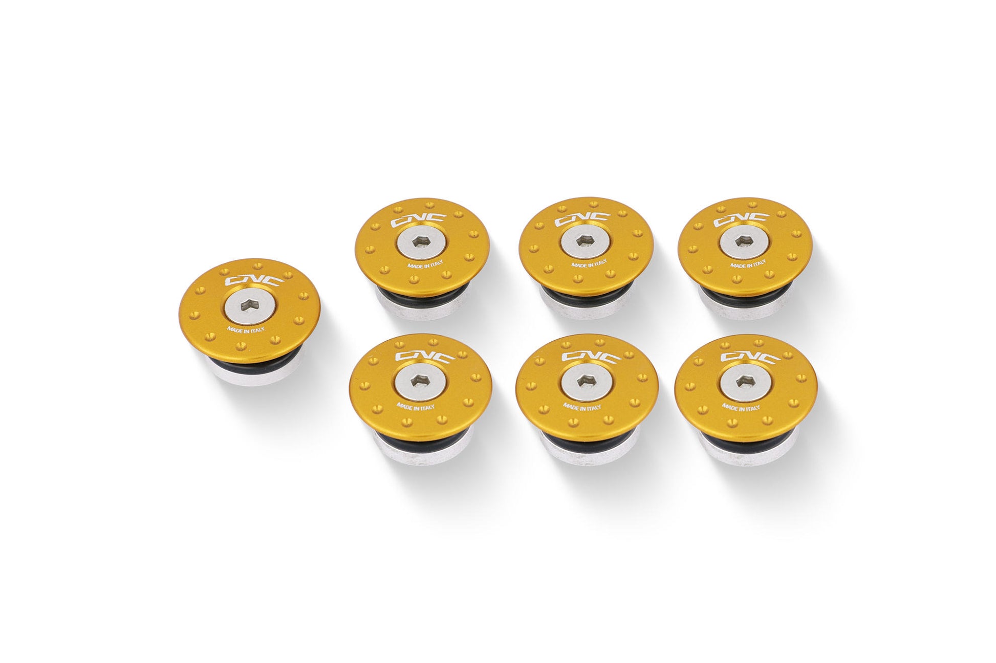 Tappi telaio realizzati dal pieno in lega leggera con successiva anodizzazione superficiale. Il kit è composto da 7 tappi ognuno nelle misure precise per adattarsi ai vari fori del telaio.