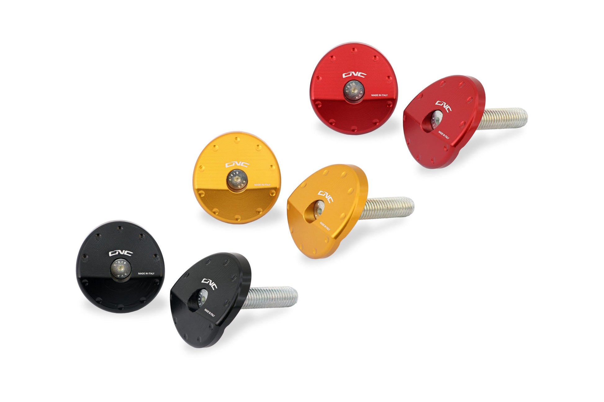 Tappi telaio realizzati dal pieno in lega leggera con successiva anodizzazione superficiale.