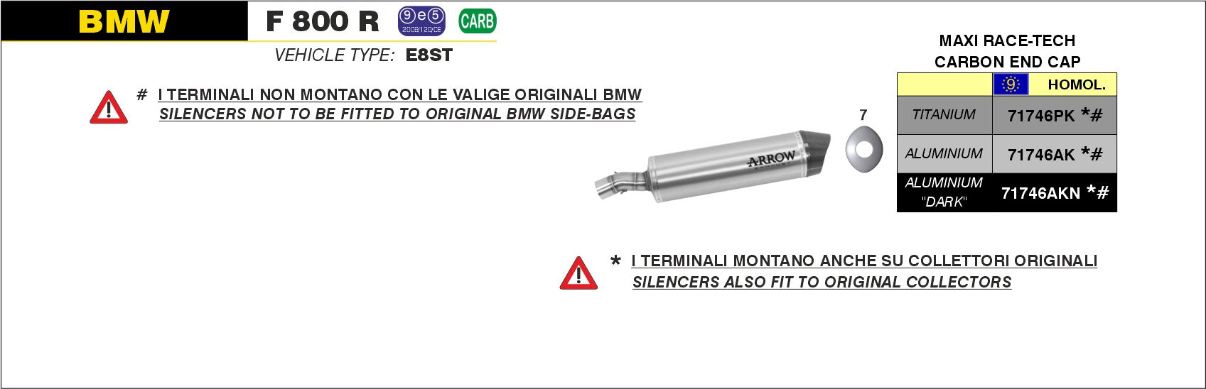 SCARICO MAXI RACE-TECH OMOLOGATO TITANIO-CARBONIO ARROW BMW F 800 R 09-16