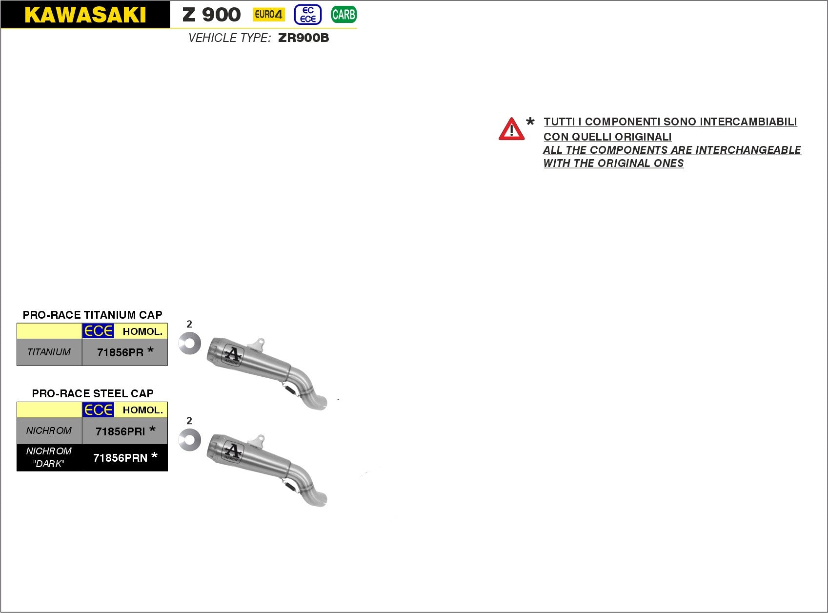 SCARICO MARMITTA PRO-RACE TITANIO ARROW KAWASAKI Z 900 E 2017-20