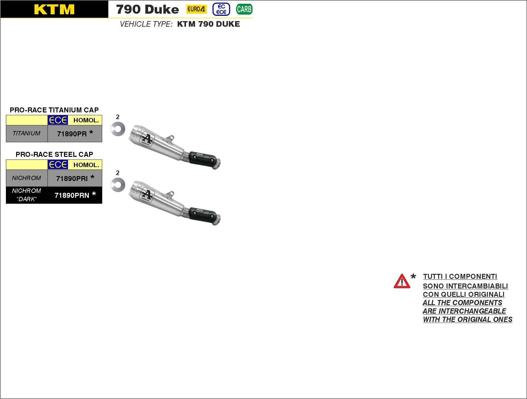 SCARICO MARMITTA PRO-RACE TITANIO ARROW KTM 790 DUKE 2018-20