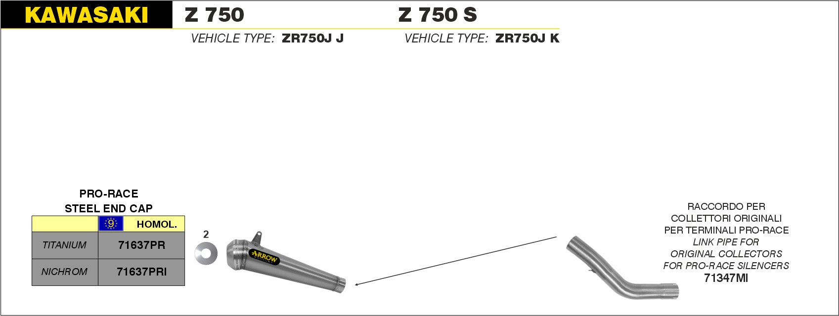 SCARICO MARMITTA PRO-RACE TITANIO ROAD OMOLOGATO ARROW KAWASAKI Z 750 2004-2006