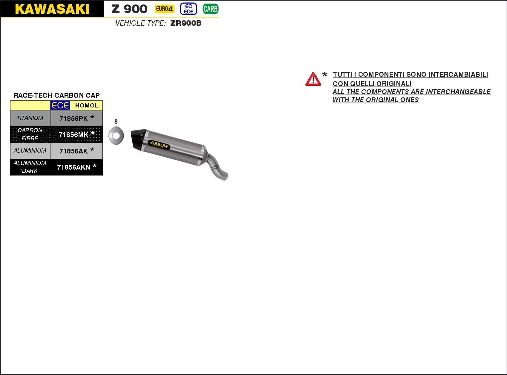 SCARICO MARMITTA RACE-TECH TITANIO-CARBONIO ARROW KAWASAKI Z 900 E 2017-20