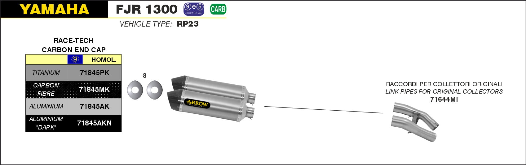 SCARICO MARMITTA RACE-TECH TITANIO-CARBONIO ARROW YAMAHA FJR 1300 2016-